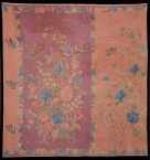 A hand-drawn batik gaily coloured on a red and blue cotton base. The central design contains a mythical lion, surrounded by phoenix and other symbols that are intended to ward off evil. Elaborately decorated altar cloths reflecting elements of Buddhism were important items in Chinese temples and households to ensure prosperity, wealth and well-being. These batik versions were modelled on imported silk and embroidered Tok Wi from China.